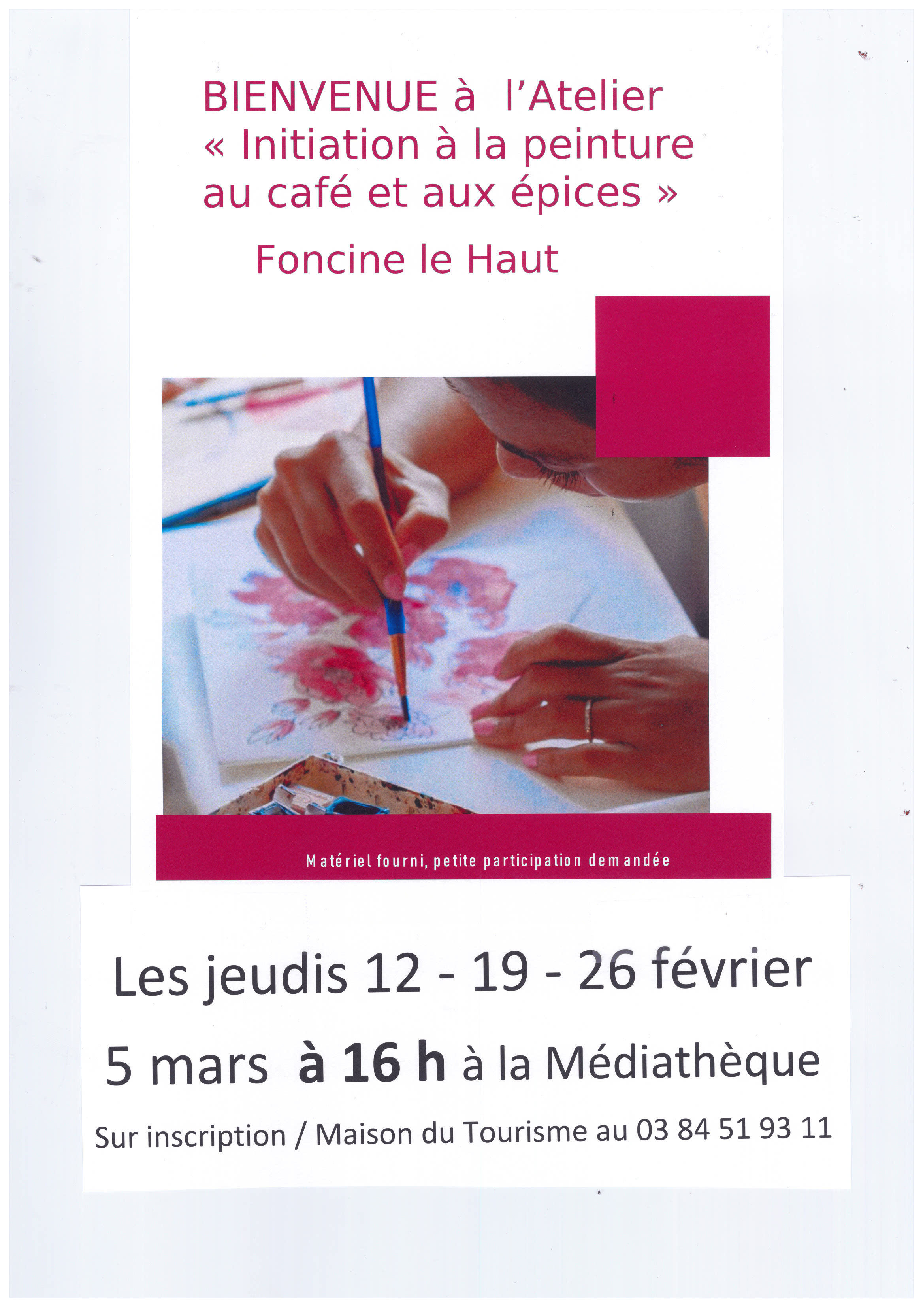 Partez à la découverte de cette technique artistique assez intéressante qui utilise le café comme médium principal. le café offre une palette de teintes sépia et brunes. Matériel fourni, petite participation demandée.