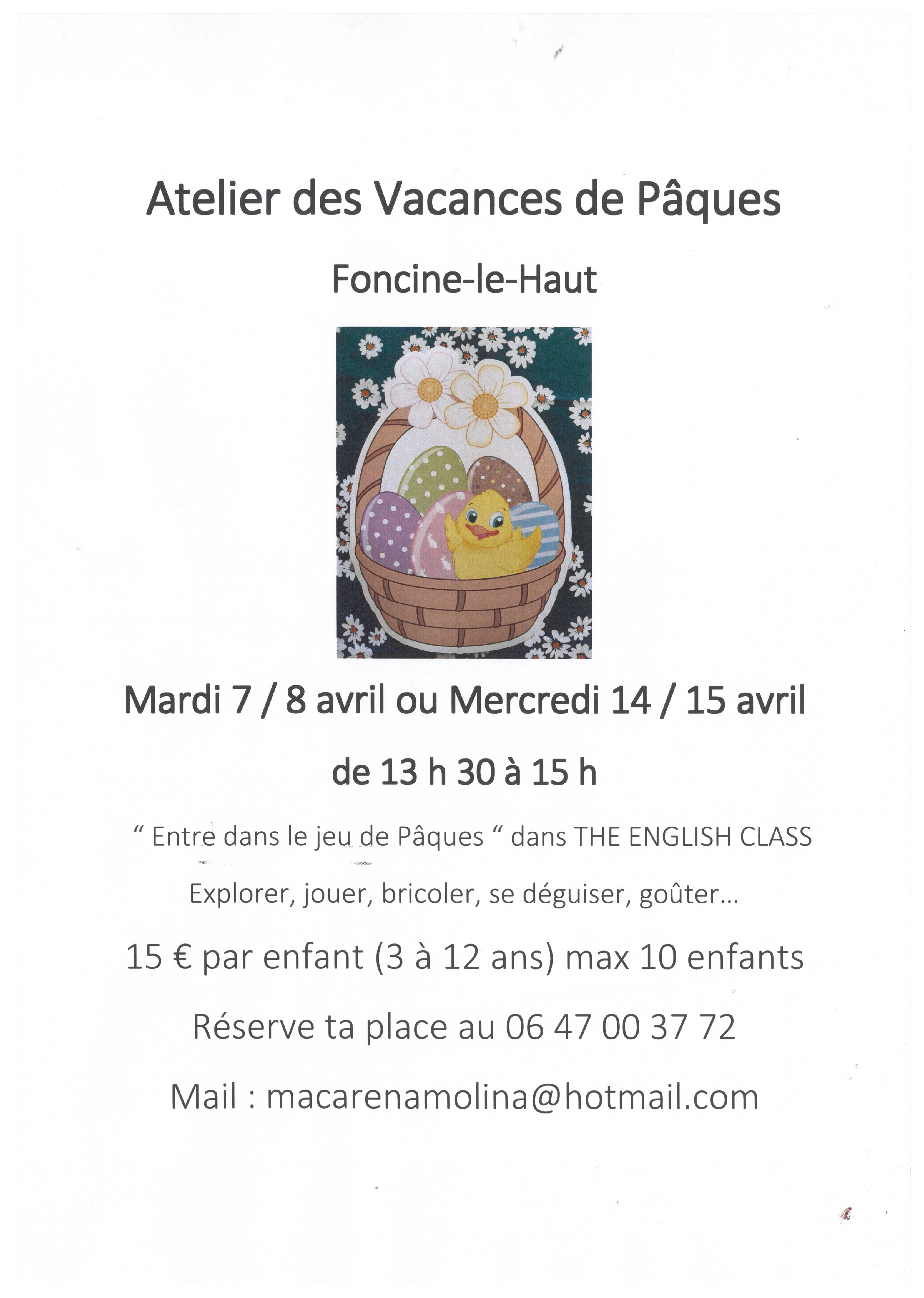 Atelier des vacances de Pâques : "Entre dans le jeu de Pâques, explore, joue, bricole, déguise-toi, goûte...
