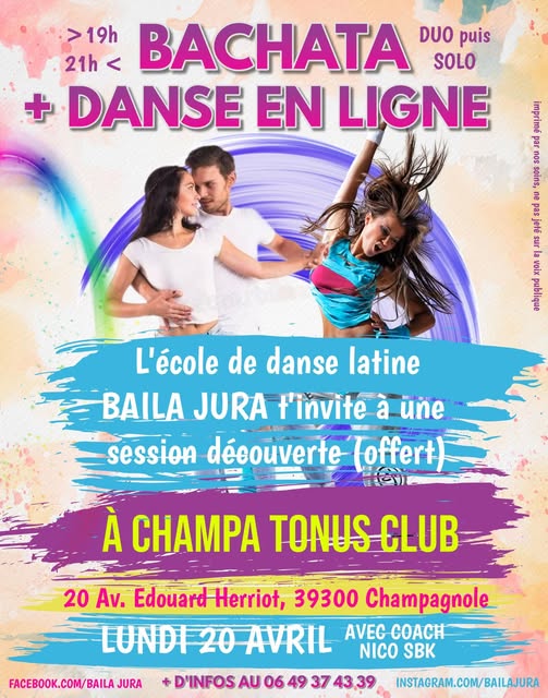 L'école de danse latine Baïla Jura vous invite à une session découverte offerte avec coach Nico SBK.
