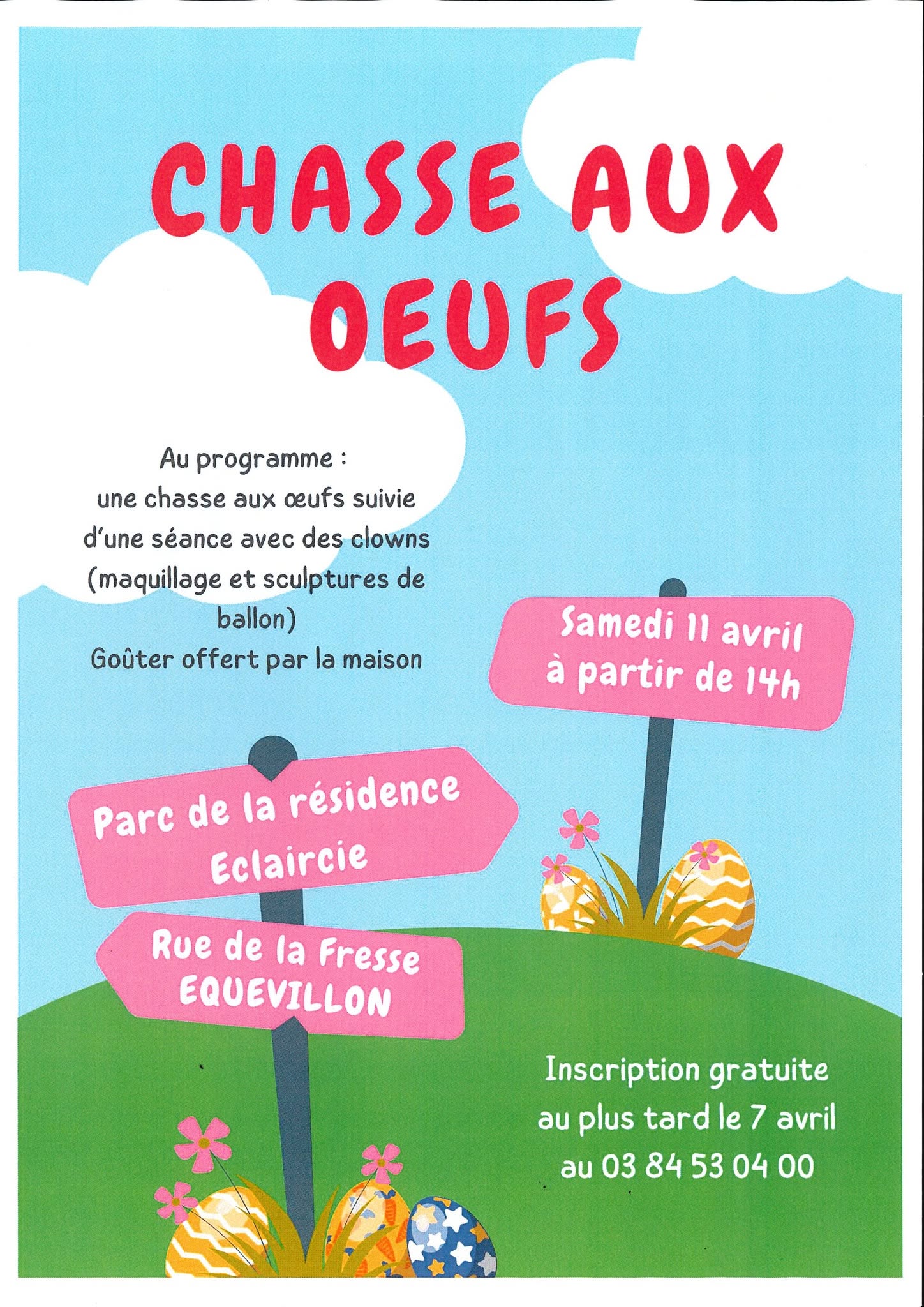 Chasse aux oeufs suivie d'une séance avec des clowns (maquillage et sculptures de ballon).
