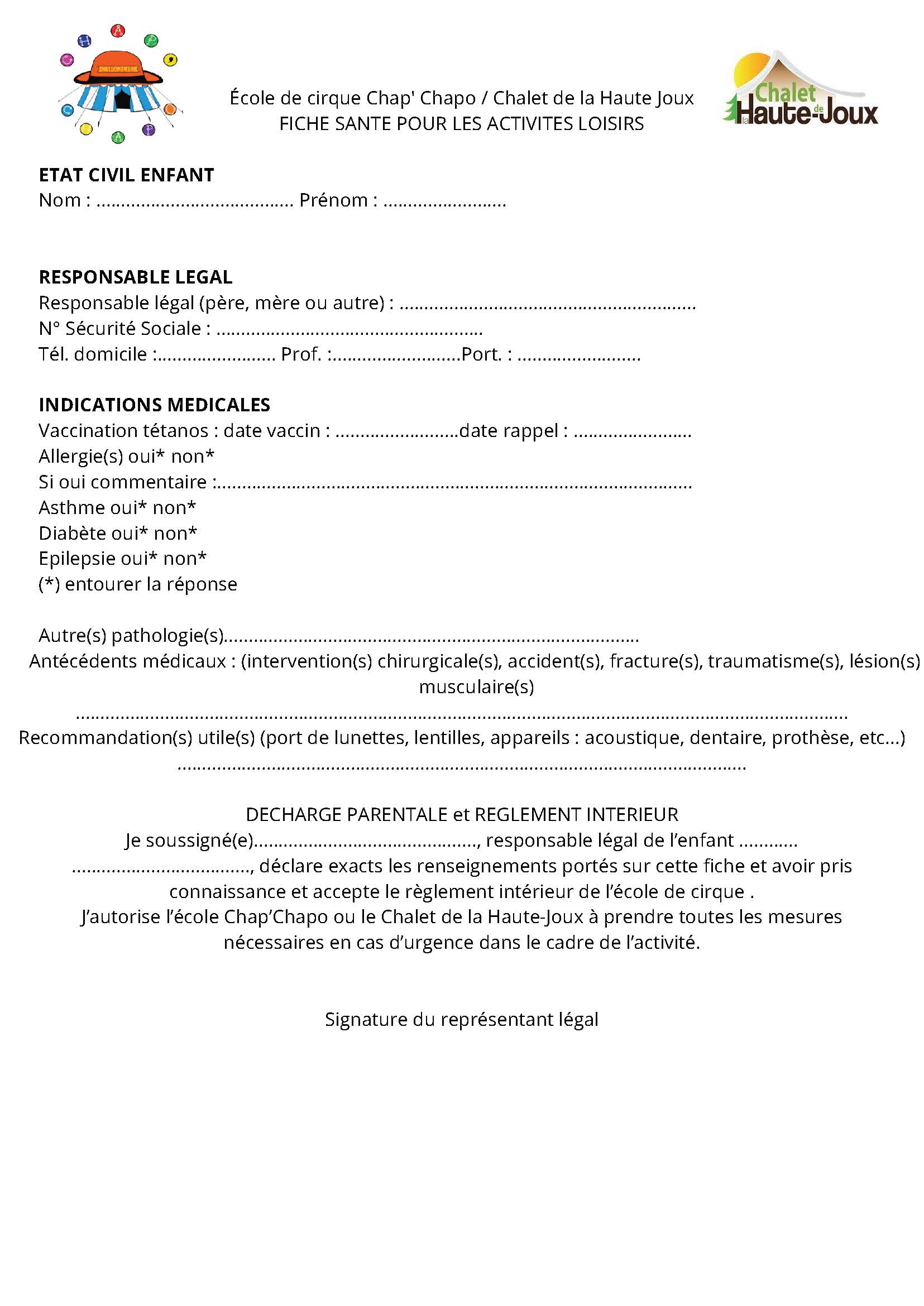 Prévoir : une gourde d’eau, une tenue sportive, pas de bijoux, cheveux attachés pour les filles.