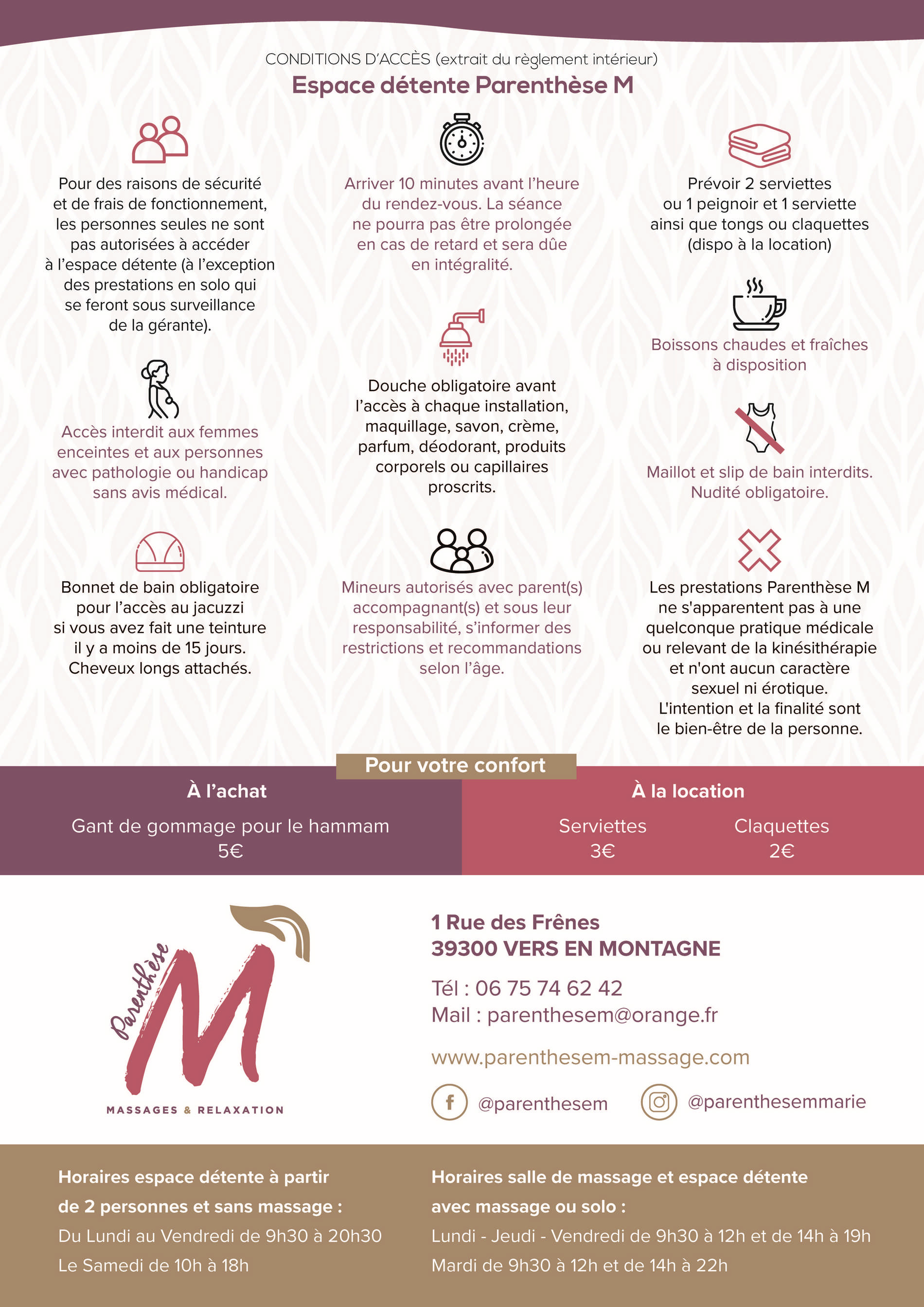 Marie Garnaux propose des massages bien-être à l’huile neutre pouvant être additionnée d’huiles essentielles aux vertus relaxantes. Au début de la séance, vous définissez ensemble les zones du corps à cibler – dos, nuque, crâne, jambes, pieds, bras, ventre, visage… - ainsi que la pression et le rythme du massage. Vous pouvez aussi opter pour des soins plus spécifiques comme le massage « Akwaterra® » à l'huile avec accessoires en grès, céramique et porcelaine chauffés à l'eau ; le massage traditionnel japonais « AMMA » pratiqué sur chaise et qui consiste à stimuler une série de points au niveau du haut du corps ; le massage avec ventouses pour un effet de décongestionnant ou encore le massage en effleurages pour favoriser la régénération des cellules, éliminer les toxines et assouplir les articulations. Pour compléter la prestation, le futur espace « jacuzzi-sauna-hammam » de l’établissement, accessible très prochainement, prolongera à merveille cette invitation à la détente... Alors qu’attendez-vous pour vous faire chouchouter ?