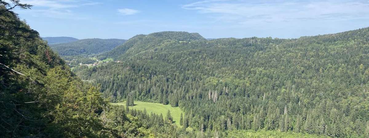 Un circuit pour découvrir différents belvédères aménagés (tables de lecture) qui offrent des vues sur les gorges de la Saine, la plaine de Syam et au loin le Mont Rivel qui domine Champagnole.