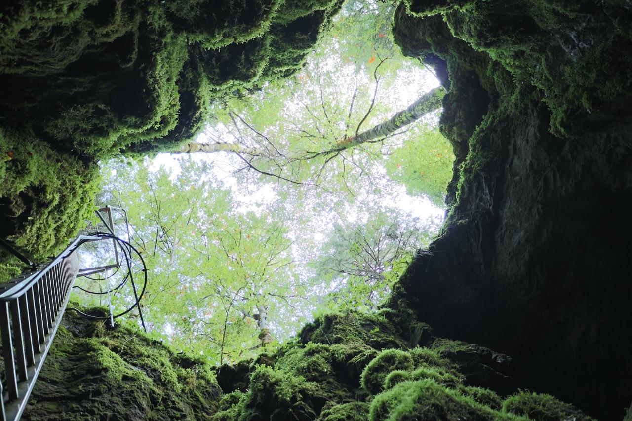Suivre Le Chemin à l’Âne où les pâtures de SUR LES GÎTS vous offrent un joli panorama sur les monts boisés des plateaux jurassiens. Emprunter Le Chemin du Creux Maldru qui s’enfonce dans la forêt et mène à la très discrète baume située à 1 130 m d’altitude sur les hauteurs du Mont-Noir.