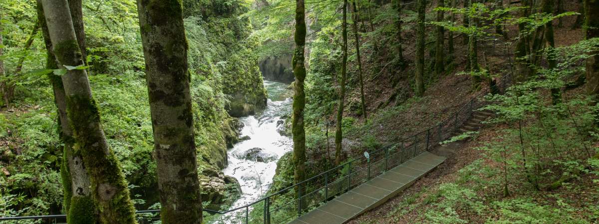 Du haut des monts et des falaises qui le protègent, nul ne pourrait deviner la présence d’un canyon bien dissimulé sous les arbres. La Saine s’y engouffre avec fougue. Force, tumulte et fracas côtoient dans ces lieux le calme, la sérénité et la douceur.