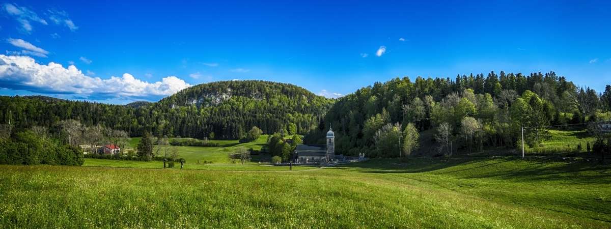 1. Au départ de Chaux-des-Crotenay depuis le grande rue, prendre à gauche le chemin de la carrière qui se transforme rapidement en chemin blanc, assez plat, vous permettant de vous échauffer et de profiter de la vue sur le massif de la Haute-Joux. Passez le poteau Les Champs Montants pour rejoindre La Carrière, puis continuer sur la route forestière de Cornu jusqu'à La Voie Sacrée.