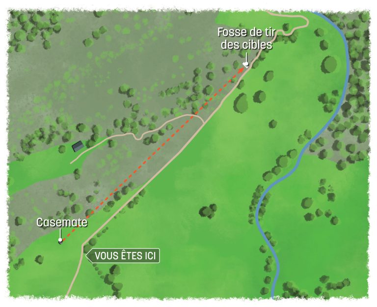 En effet, c’est à flanc de coteau, dans une zone d’éboulis à hauteur du lieu-dit « Pâtures du Bayard », qu’une casemate (pas de tir) fut implantée à une distance de 320 mètres d'une fosse où on dressait des cibles.