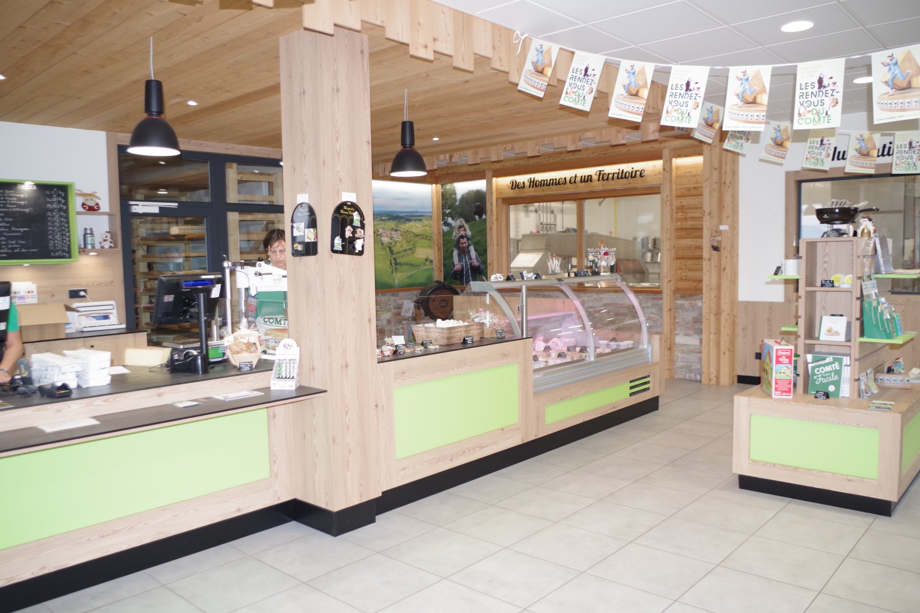 Le magasin de la coopérative met en valeur de belle manière le terroir jurassien en proposant une large sélection de produits régionaux. Vous y trouverez bien sûr le Comté de la coopérative à différents degrés d'affinage (doux, fruité ou vieux), mais également d'autres fromages locaux comme le Morbier, le Mont-d'Or ou le Petit Mournier...