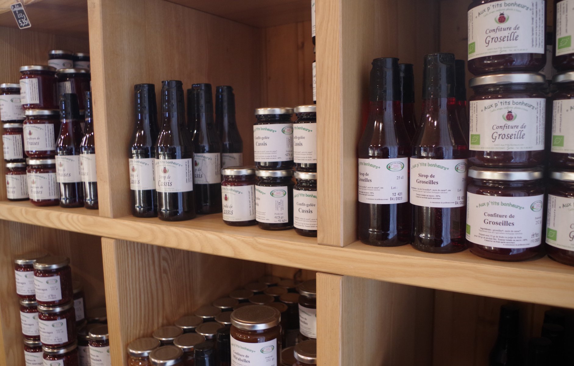 Ils transforment directement dans leur atelier les fruits et les plantes en de multiples « p'tits bonheurs » 100 % bio : confitures aux fruits, sirops, tisanes, aromatiques secs, gelées de plantes, champignons secs, champignons au vinaigre, pesto d'ail des ours, vinaigres aromatisés...