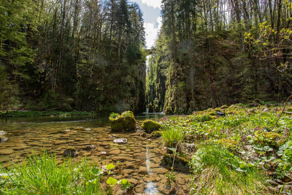 Ne quittez pas trop vite la Haute Vallée de la Saine, qui renferme bien d’autres joyaux... Non loin de la Roche-Fendue, se trouvent notamment : le belvédère du Bulay (d’où l’on peut admirer, par temps clair, la chaîne du Mont-Blanc)... la mystérieuse source de la Saine (qui jaillit d’un pierrier au cœur d’un amphithéâtre impressionnant)... ou encore la cascade du Bief de la Ruine (la plus haute du Jura !) ou les gorges de Malvaux...