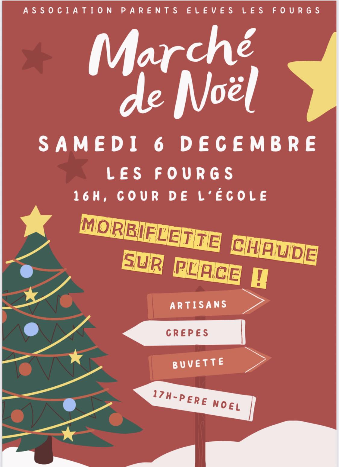 Organisé pas l'association des parents d'élèves des Fourgs. Artisanat local, morbiflette et buvette.