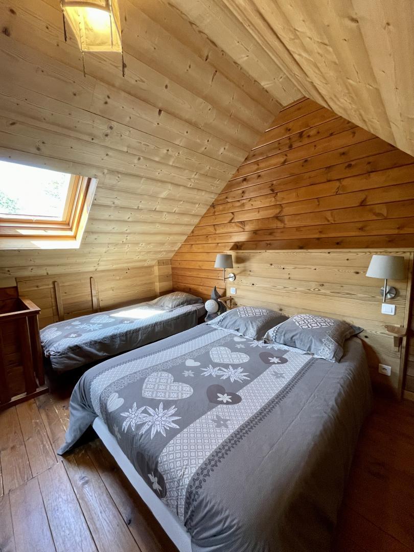 Philippe et Sandrine vous accueillent pour un séjour d'exception dans un environnement chaleureux et convivial. Venez profiter de ce gîte pour 2 ou 3 personnes. Il se compose d'une pièce à vivre avec cuisine, salle à manger et salon (dvd-usb, chaine hifi), salle de bain/détente avec une baignoire en bois originale, sauna, wc. A l'étage, une chambre mezzanine avec 1 lit 2pl et 1 lit 1pl. Le gîte dispose d'une terrasse privative avec salon de jardin et barbecue. Vaste terrain en commun avec 2 autres gîtes. Vous pourrez également profiter de la balançoire, du terrain de pétanque ainsi que de l'espace détente : piscine (uniquement en saison estivale, en commun et soumise à horaires), chalet sauna, bain nordique (en commun et soumis à horaires). Les gîtes peuvent être loués ensemble en cas de regroupement familiale. Lits faits à l'arrivée. A découvrir absolument www.giteslescherubins.com