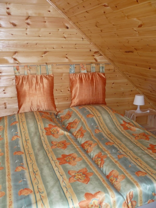 Dans un cadre naturel, chalet bois (MELEZE) entièrement neuf et indépendant, situé sur un terrain comportant 4 autres gîtes. Salon-séjour (poêle à bois) coin cuisine équipé (micro-ondes), salle d'eau (douche hydrothérapie et sauna finlandais), WC indépendant, ch1: 1 lit 2 pl, ch2: 1 lit 2 pl, à l'étage: ch3: 3 lits 1pl, ch4: 3 lits 1 pl, salle d'eau, wc. Chauffage électrique et poêle à bois (bois fourni gratuitement). Terrain attenant non clos,salon de jardin, barbecue. Piscine,tennis et terrain de jeux municipal à 100 mètres. Tous commerces à 800 m.