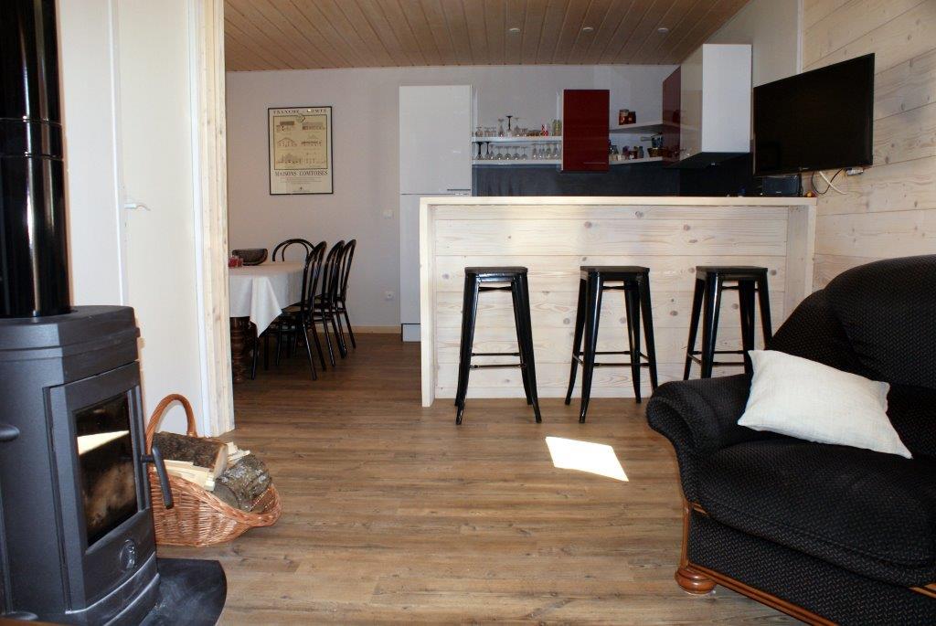 Logement rénové à l'étage d'une maison. Hall d'entrée, cuisine ouverte sur espace repas et coin salon (poêle à bois), deux salles d'eau avec WC. Les chambres se situent à l'opposé pour un meilleur confort : chambre 1 : 2 lits 2 places superposés (possibilité de 2 couchages supplémentaires), chambre 2 et chambre 3 avec chacune 1 lit 2 places. Le gite dispose d'un terrain clos, d'une terrasse de 19m² avec un salon de jardin, barbecue grill plancha et parasol. Box internet par fibre. Possibilité de location de draps 1 personne et 2 personnes avec taie oreiller, linges de toilette et draps de bain. Prise renforcée GreenUp voiture électrique.