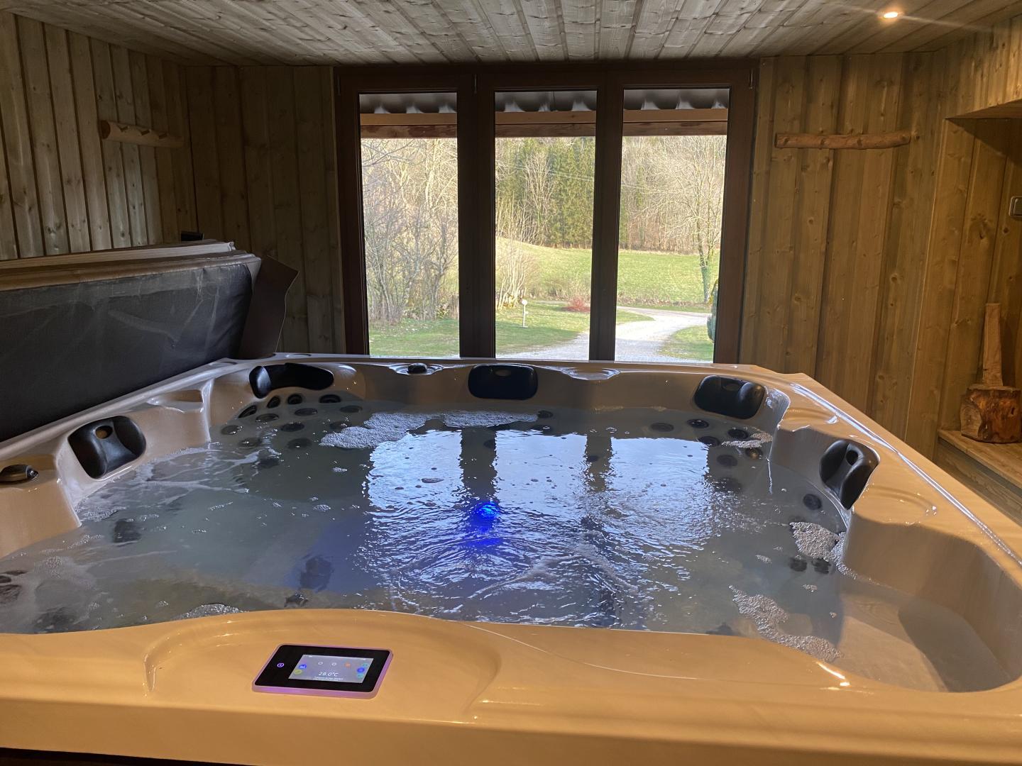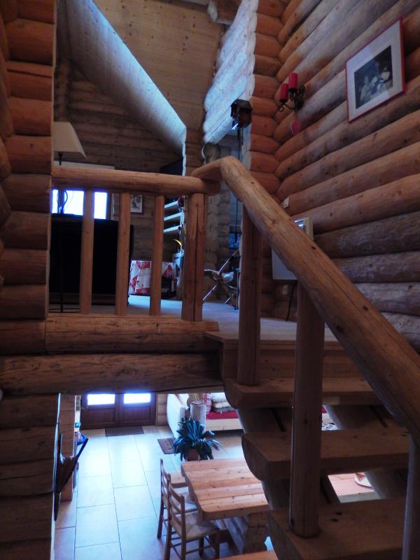Au coeur du Parc Naturel Régional du Haut Jura, en pleine nature, avec une vue dégagée sur prés et forêt, grand chalet indépendant en bois rond avec au RDC: cuisine ouverte sur vaste séjour-salon, poêle à bois, CH1: 1 lit 2 pl (180X200), CH2: 4 lits 1pl superposés et accès direct dans la buanderie (lave-linge, sèche-linge) / salle de jeux (ping-pong, baby-foot), 1 salle d'eau et salle de bain. A l'étage: salon avec tv écran plat, TNT, lecteur DVD, CH3: 1 lit 2 pl, CH4: 1 lit 2 pl, CH5: 1 lit 2 pl (180X200), accès balcon. Salle de bains. Sauna et spa à disposition. Grand terrain attenant non clos, terrasse avec salon de jardin, barbecue. Véritable havre de paix pour les amoureux de la nature. Wifi.