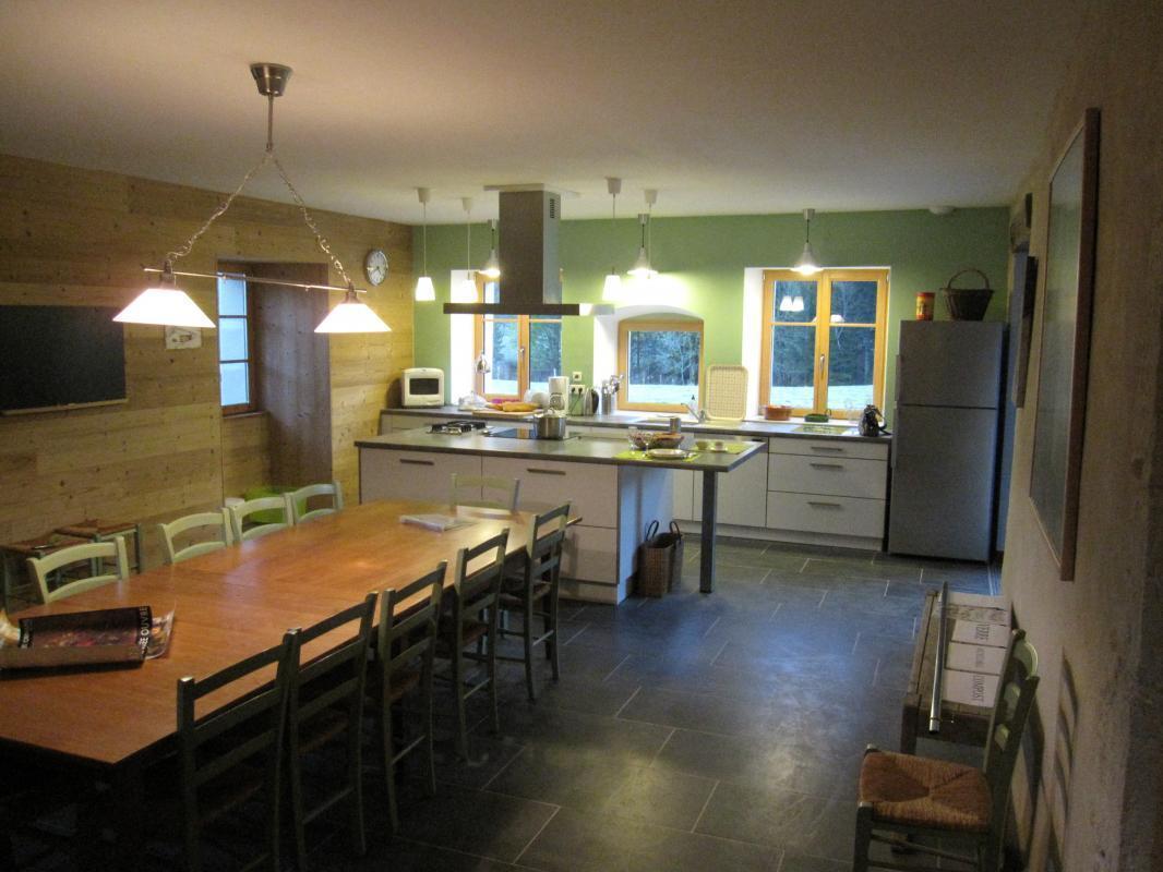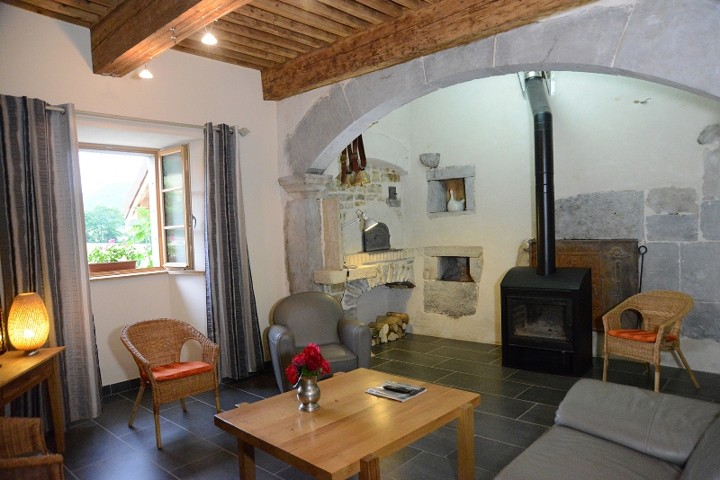 Gîte entièrement rénové dans une partie d'un ancien tuyé, aménagé avec goût et raffinement. Amateur de pierre et de bois, ce gîte saura vous séduire. Au rez de chaussée: grande cuisine ouverte sur salle à manger, 2 espaces salon dont 1 avec poêle à bois, Ch1 : 1 lit 2pl (160cm), salle d'eau, wc. A l'étage : mezzanine avec baby foot, 2 chambres avec chacune 1 lit 2pl (160cm) et salle d'eau et wc privatifs, 2 chambres avec chacune 1 lit 2pl (160cm) et 1 lit 1pl avec une salle d'eau et wc en commun. Nouveauté : depuis janvier le gîte est équipé d'un sauna. Grand terrain attenant avec ruisseau à truite à 150m. Salon de jardin, barbecue, local à disposition. Chauffage par géothermie avec plancher chauffant. Literie grande dimension.