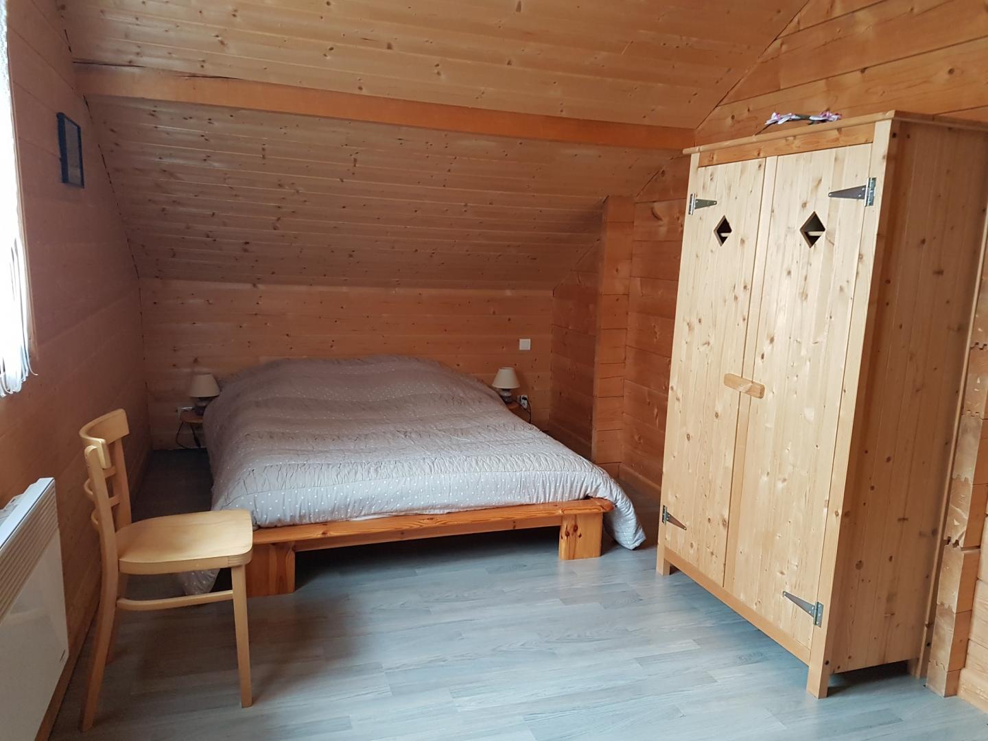 Chalet indépendant. Au RDC: cuisine-séjour-salon, poêle à bois, salle d'eau, WC indépendant. A l'étage: ch1: 1 lit 2 pl, 1 lit 1 pl, ch2: 1 lit 2 pl. Cour et jardin attenant clos, salon de jardin, barbecue. Chauffage électrique et bois (fourni gratuitement). Accrobranche à 15 km. Confort: congélateur, antenne parabolique. A disposition: service à raclette, chaise bébé, jeux. Animaux admis hors vacances scolaires moyennant caution supplémentaire. Tarif : 4 euros par animal et par jour.