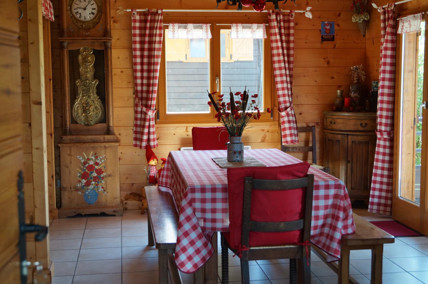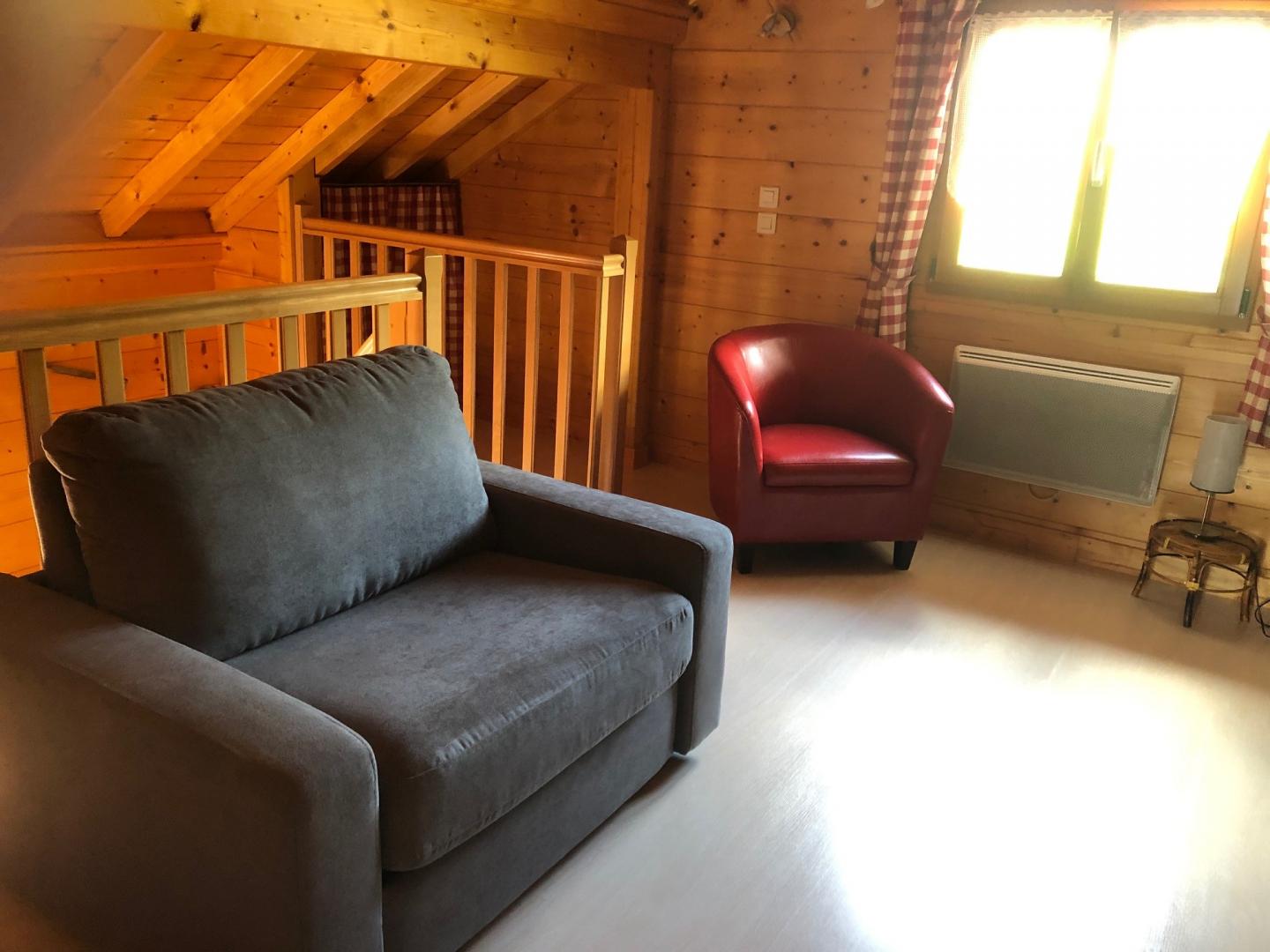 Au centre du petit village, joli chalet indépendant tout neuf, avec au rez de chaussée une cuisine toute équipée, une salle à manger avec poêle à gaz, salle d'eau, wc indépendants, une chambre avec 1 lit 2 places. A l'étage, un espace détente en mezzanine avec DVD, jeux, un canapé lit 2 places, une chambre avec : 1 lit double en 160*200 + 1 lit bébé. Chauffage électrique, terrasse fermée avec salon de jardin, barbecue, portique. Parking privé sur place, Abri voiture non fermé, terrain attenant non clos. Toutes charges comprises. Terrain de boules. Taxe de séjour : 1€ par nuit par pers