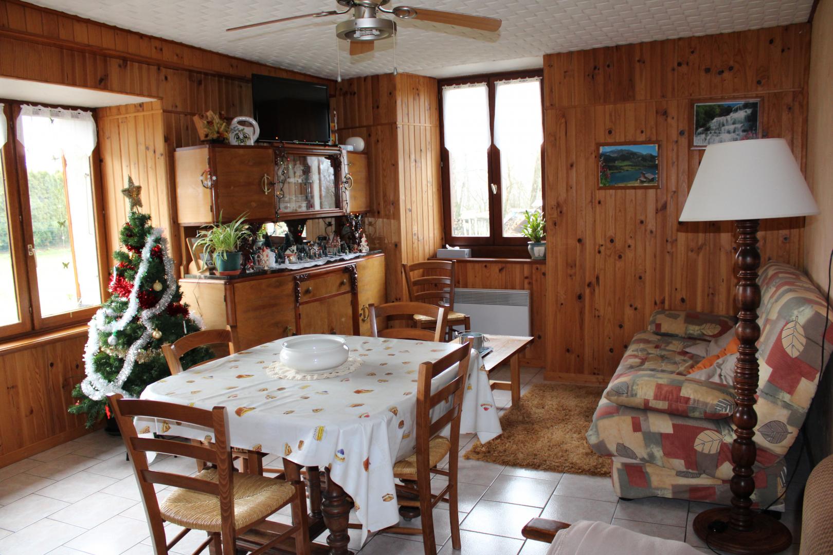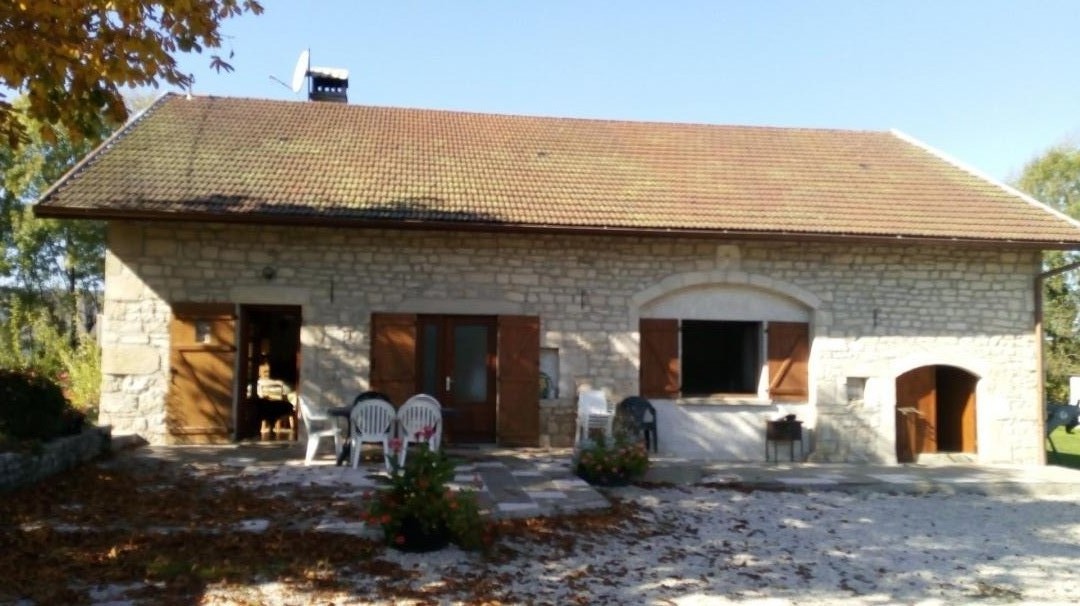 Maison indépendante de plain-pied idéalement située à proximité du Haut-Jura et de la région des lacs pour vous permettre de découvrir les nombreux sites touristiques du département. Le gîte dispose d'une vaste cuisine avec poêle à bois, séjour-salon avec canapé convertible, salle de bains avec baignoire, chambre 1: 1 lit 2 pl, 1 lit 1 pl, chambre 2: 1 lit 2 pl, 1 lit 1 pl, salle d'eau avec douche. Chauffage électrique et bois (fourni). A l'exterieur vous disposerez d'un vaste terrain verdoyant calme attenant non clos, terrasse, salon de jardin, barbecue. Charges comprises en été.