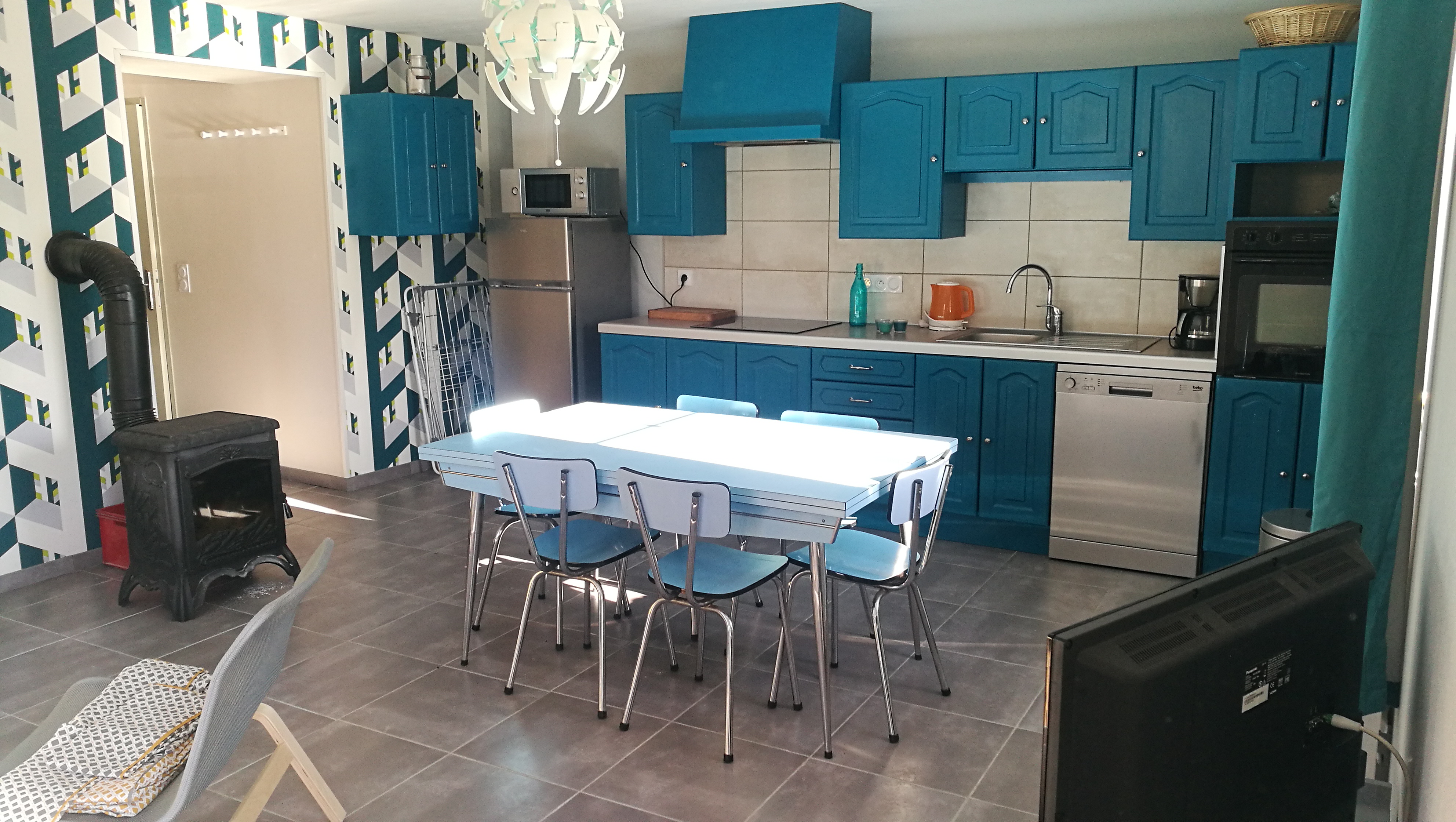 Gîte avec 4 chambres : 2 lit 140, lits gygones et lits superposés, 2 Salles de bain avec douche à l'italienne et 2 toilettes séparés. Cuisine toute équipée. Fibre.
