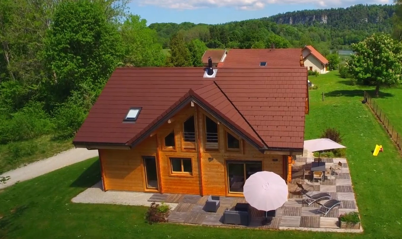 venez profiter de ce grand chalet bois situé en plein coeur du Jura à proximité de nombreux lacs et sentiers de randonnées. Ce chalet a été entièrement construit avec des matériaux sains et de provenance locale. Hall d'entrée, grande pièce à vivre lumineuse avec salon accueillant et chaleureux (poêle à bois, Tv avec home cinéma), salle à manger et cuisine. Une 1ère chambre : 1 lit 2 pl (160X200cm), salle d'eau avec wc. A l'étage : mezzanine, Ch2 : 1 lit 2 pl (160X200cm), Ch3 : 2 lits 1 pl, salle d'eau avec une grande cabine de douche et jets hydromassants, wc indépendant. Terrain non clos avec table et salon de jardin, plancha. Local à motos, vélos, ski,... Tout le RDC du gîte est accessible aux personnes à mobilité réduite. Lits faits à l'arrivée. Linge de toilette compris dans le forfait ménage. Bois fourni gratuitement. Les propriétaires ont su valoriser leur hébergement (classement BBC) avec une démarche environnementale par le biais de la thématique "Ecogeste". Le forfait ménage varie de 50€ à 90€ en fonction du nombre de personne et de pièces utilisées, il doit être réservé directement auprès des propriétaires. Note : à certaines périodes le chalet peut être réservé de 4 à 7 jours.