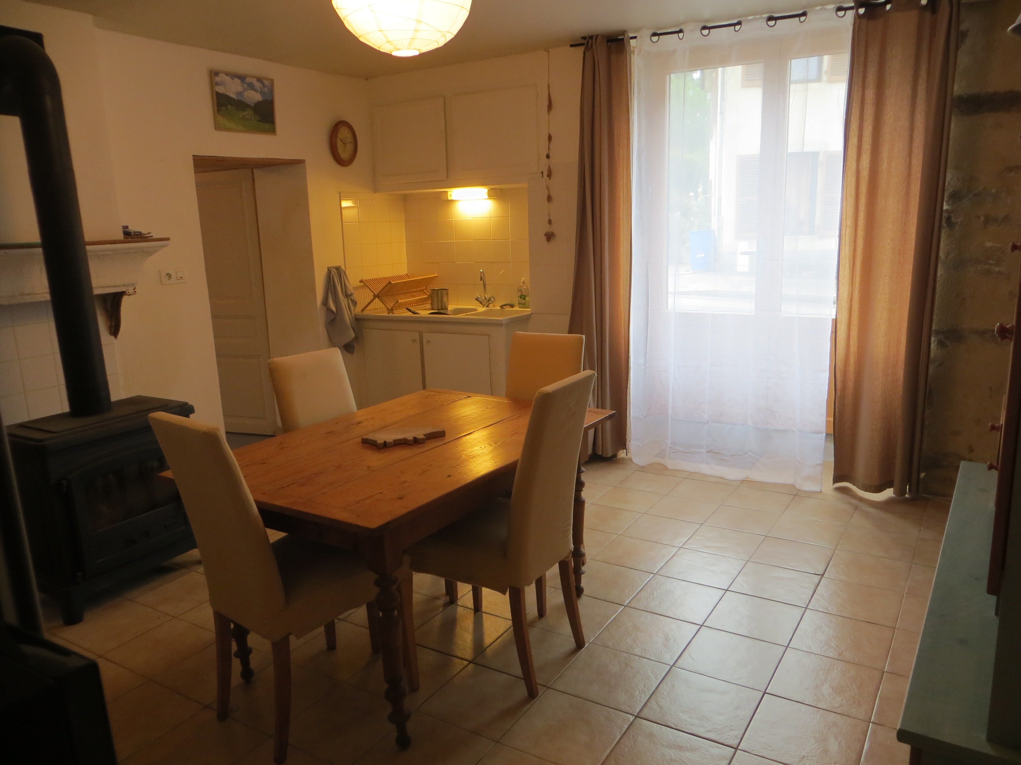 Le chauffage est assuré par des radiateurs (chaudière à granulés pour toute la bâtisse) mais ceux qui le souhaitent peuvent aussi faire un feu dans le poêle à bois de la cuisine. En été, lorsqu'il fait très chaud, fraîcheur garantie !