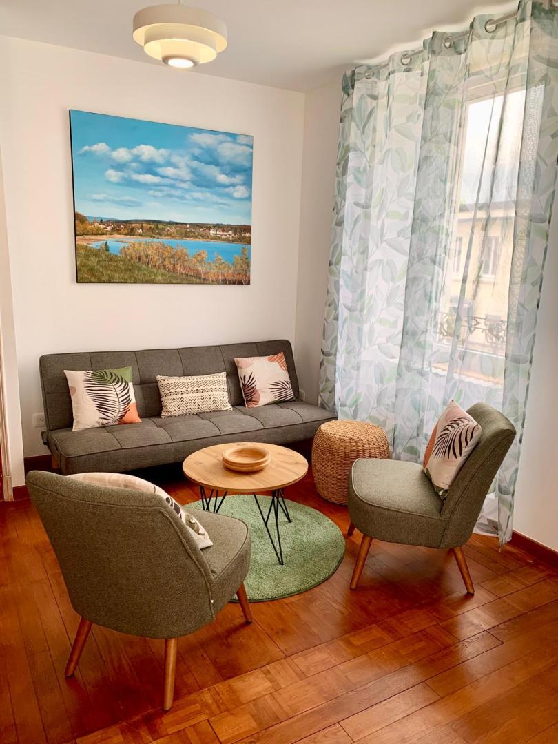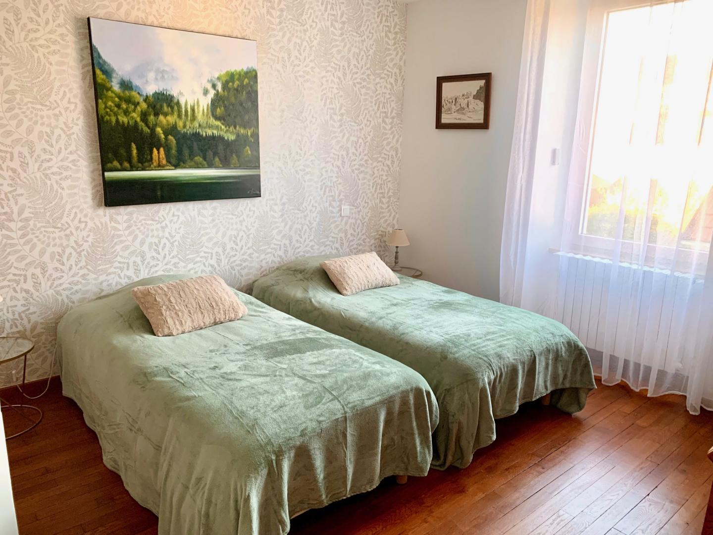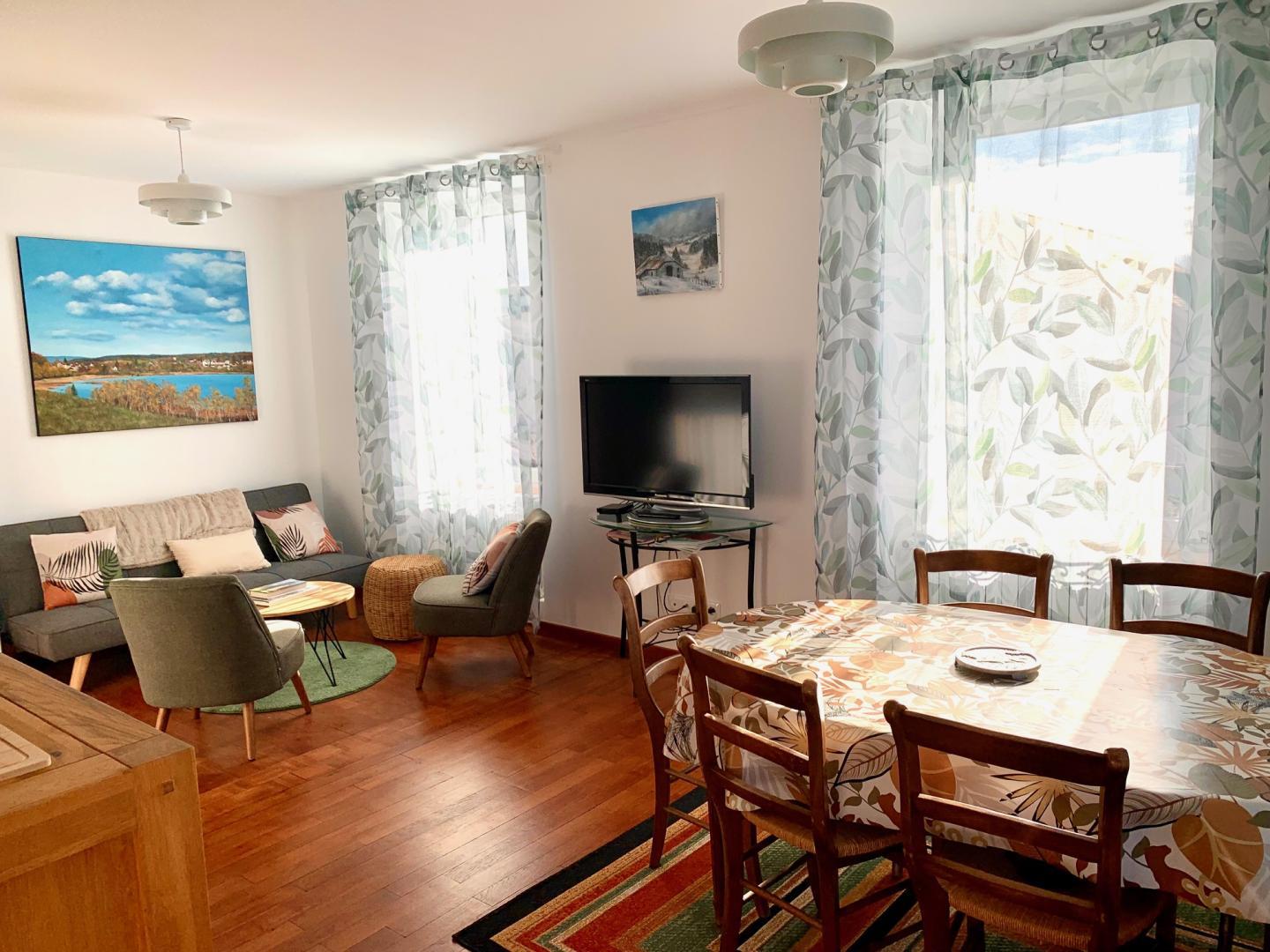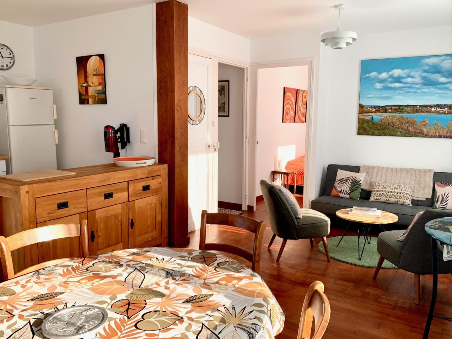Cet appartement moderne tout confort se situe au premier étage (accès privatif par un escalier extérieur) d'une jolie maison Art Déco, au dessus de l'atelier d'une artiste habitant le rez- de-chaussée. ll se compose d'une pièce de vie avec cuisine équipée, coin salle à manger et espace salon avec canapé et TV, de 3 chambres, dont 2 avec chacune 2 lits simples (pouvant être rapprochés si besoin) et 1 avec 1 lit double (140*190), d'un coin bibliothèque avec livres et jeux, d'une salle d'eau avec douche et d'un WC indépendant. Côté extérieur, vous pourrez profiter d'une grande terrasse couverte aménagée avec salon de jardin et plancha ainsi que d'un vaste jardin partagé pour d'agréables moments de détente et de flânerie. Vous pourrez profiter du calme et de la sérénité des lieux tout en étant à 5 mns à pied du centre-ville où vous trouverez nombreux commerces et restaurants. Stationnement gratuit aisé devant la maison.
