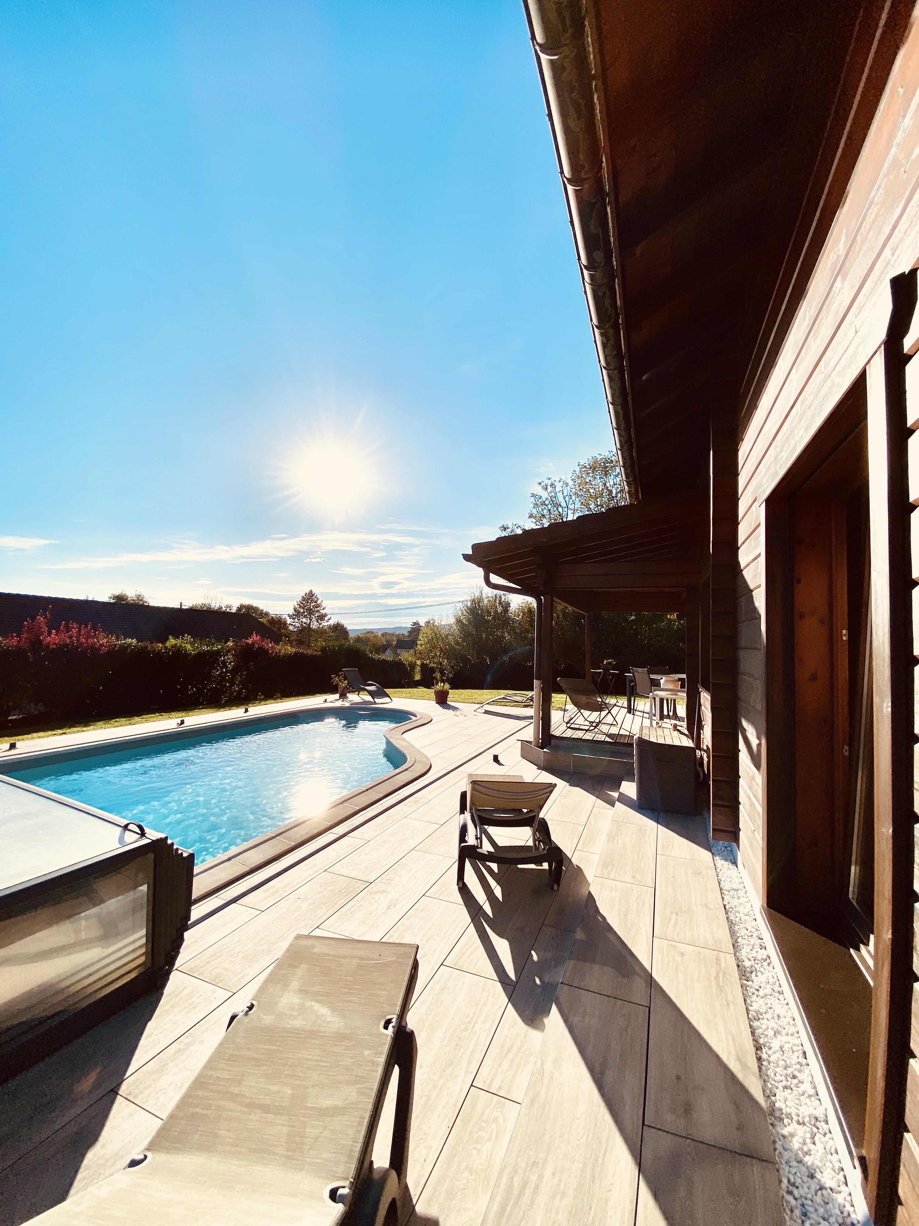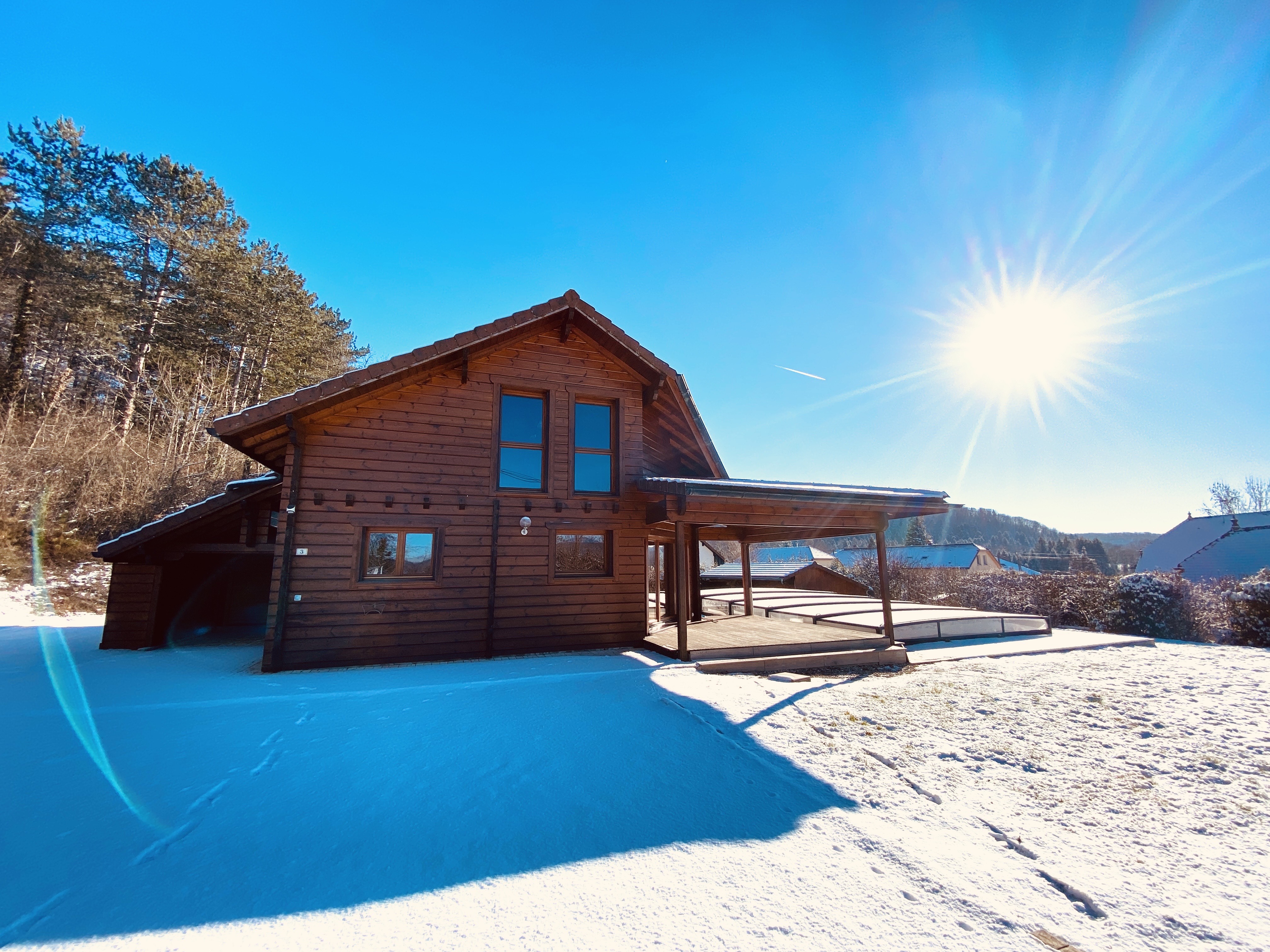 Avec ses 4 chambres, 3 salles de bain, cuisine toute équipée ouverte sur salon, terrasse abritée, piscine privative pour les beaux jours et poêle à bois nordique pour les journées enneigées, ce cocon en bois Finlandais fera de votre séjour un véritable havre de paix offrant tout le confort nécessaire à la détente.